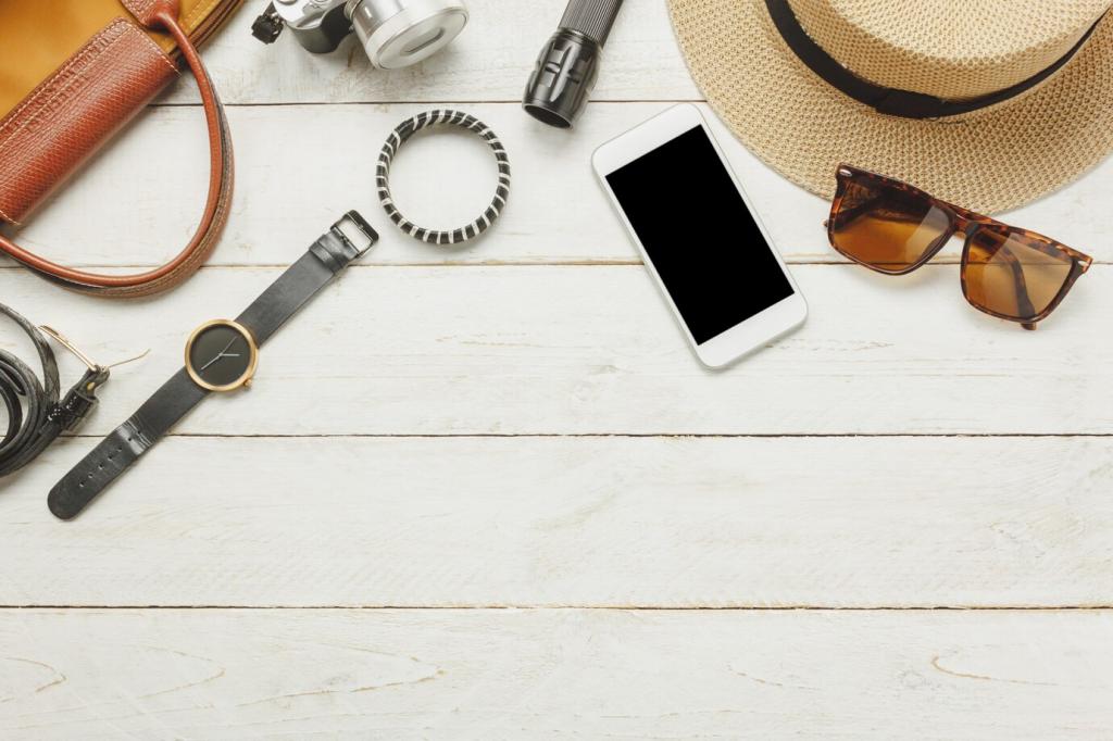 Leichte, zugelassene Powerbanks und kompakte Multikabel sind Gold wert. Prüfe Regeln der Airline und sichere Geräte stoßfest. Teile deine Favoriten, die praktisch sind und trotzdem gut aussehen.